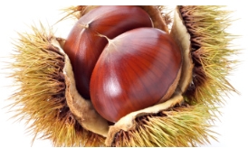 밤에는 항산화 물질인 폴리페놀, 카로티노이드 등이 풍부하게 함유되어 있어 노화의 원인인 활성 산소 제거에 도움을 주기 때문에 피부 재생 및 노화 방지에 도움을 줍니다. 특히, 밤 속껍질 율피에는 폴리페놀의 일종인 타닌이 풍부하기 때문에 피부 노화 방지에 도움이 될 뿐 아니라 항균 작용이 뛰어나 여드름 등의 박테리아와 세포 손상을 막아주며 모공에서 분출되는 과다한 기름을 줄여주는 효과가 있습니다.